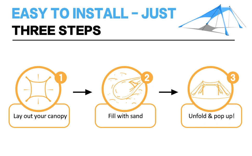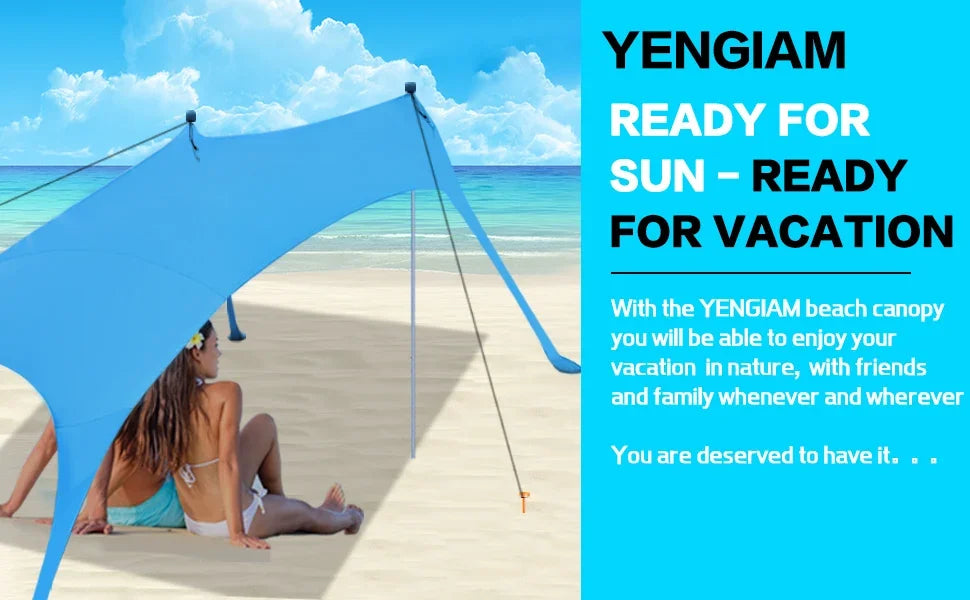 such as UPF50+ 14% Lycra and 86% polyester, this durable and windproof one-piece Beach Canopy Tent provides you with ultimate protection from the sun’s harmful rays.