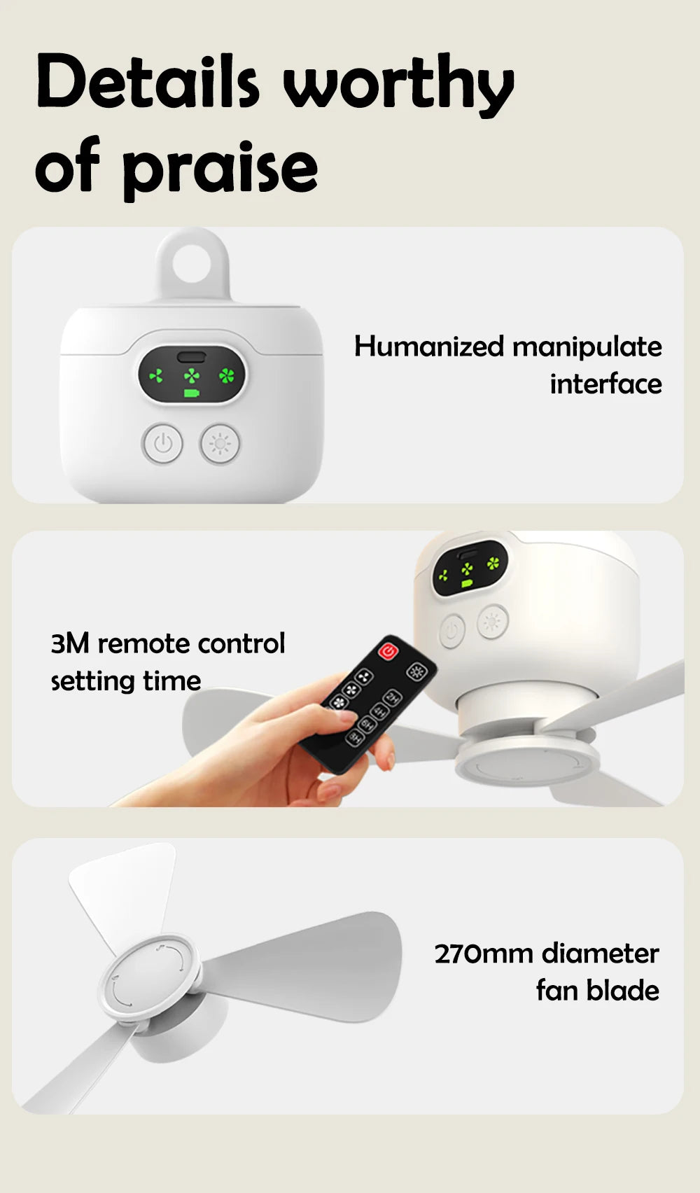 Three-speed wind speed adjustment + natural wind + soft light night light